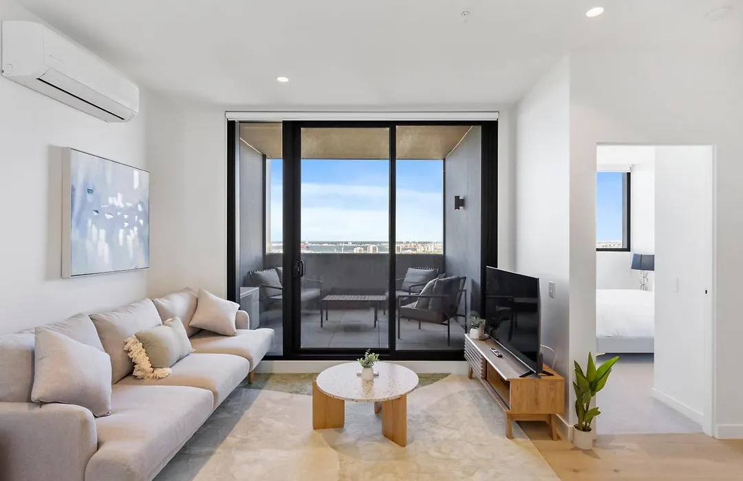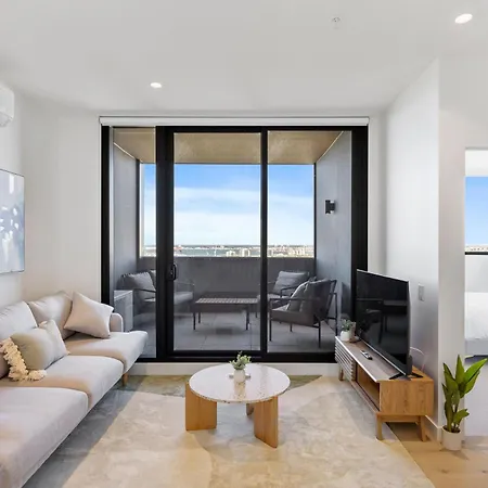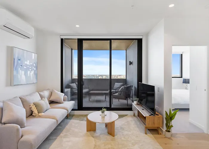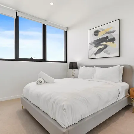 Brand New Apt With Stunning Views & Wifi Lägenhet lägenhet är belägen i Melbournes bostadsområde, intill North Port Oval. Stället har ett komplett kök, försett med mikrovågsugn och kylskåp.